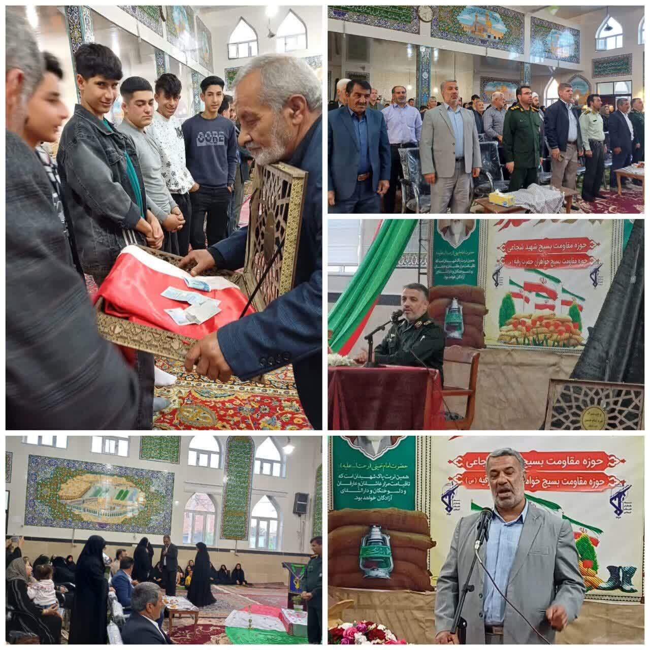 در پایان مراسم، با اهدا لوح افتخار، از خانواده های معظم شهدای این روستا تجلیل و از خیرین حرم ساز، آقایان حسین اسمعیل زاده و ورهرام علیزاده با اهداء لوح و هدیه متبرک و معنوی بارگاه حضرت ابا عبدالله الحسین علیه السلام ، تقدیر شد .